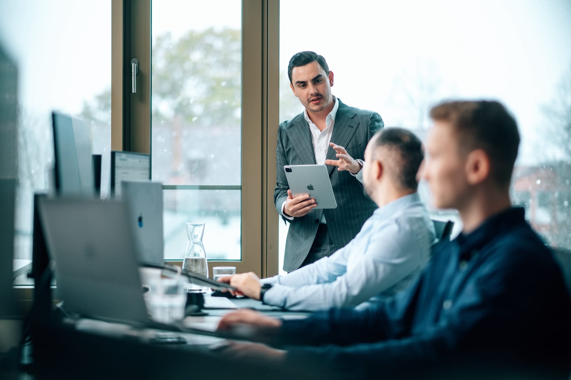 • Modern ausgestattete Arbeitsplätze (Apple-MacBooks, iPhones, höhenverstellbare Schreibtische, ergonomische Ausstattung).
